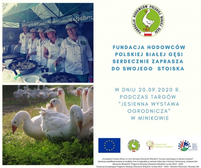 W ramach projektu Gęsina nie tylko na św. Marcina – Promocja przyzagrodowego chowu, przetwórstwa oraz walorów żywieniowych gęsiny podczas targów i imprez plenerowych Fundacja Hodowców Polskiej Białej Gęsi serdecznie zaprasza do swojego stoiska